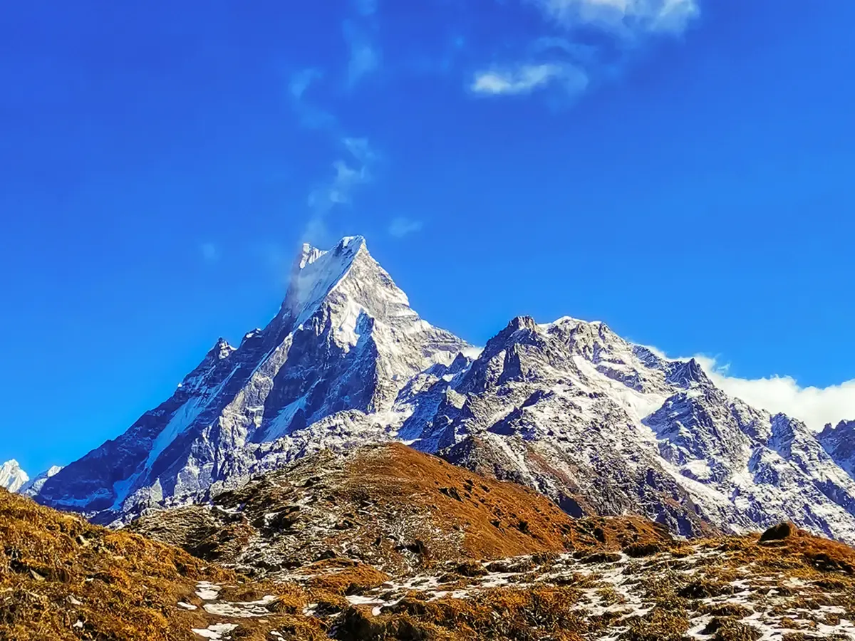 Upon reaching the 4,450-meter Mardi Himal Base Camp, you will enjoy the ultimate highlight of this trek. You will stand directly beneath the towering south face of Machhapuchhre and enjoy the vast Himalayan landscape.